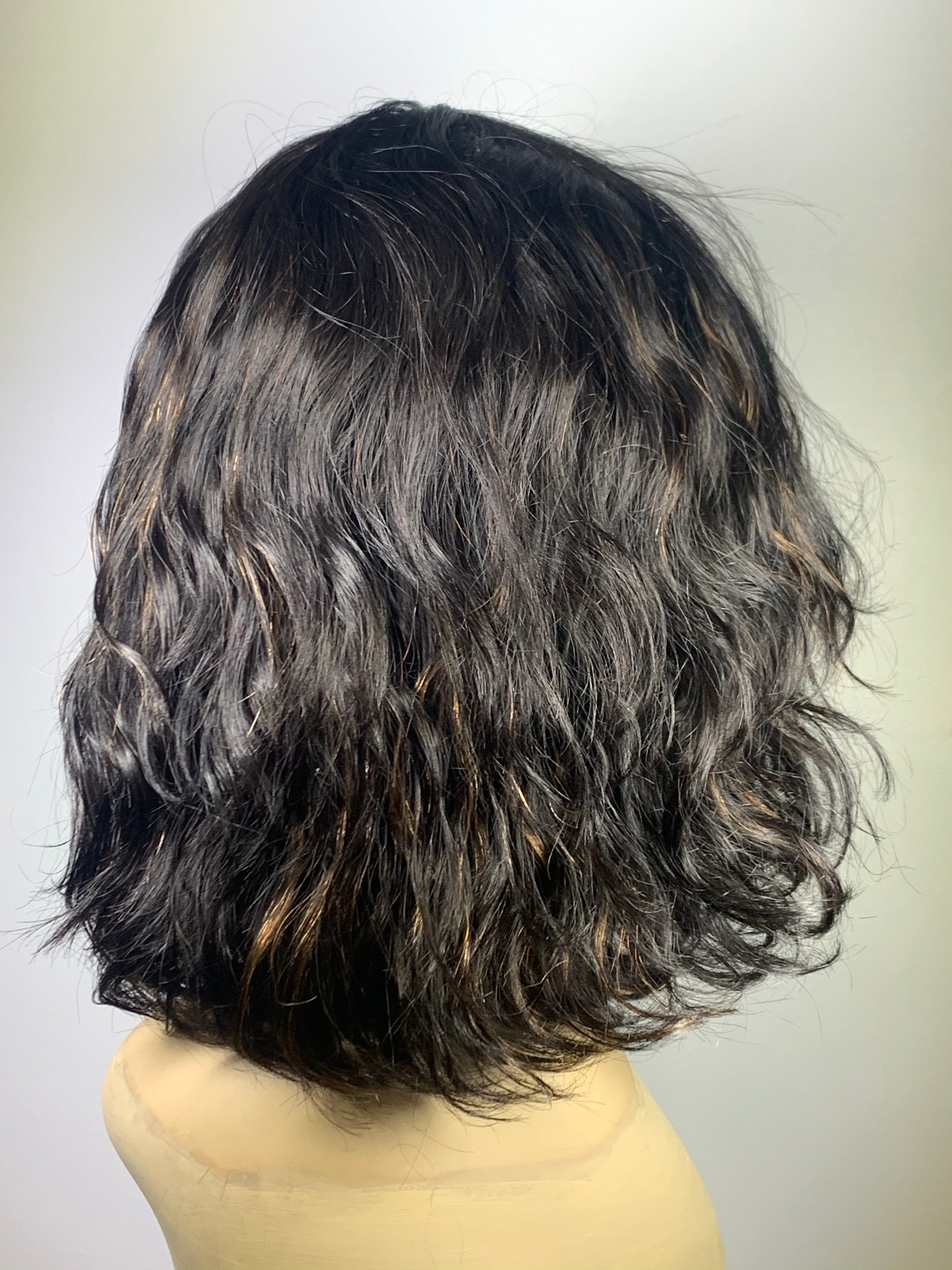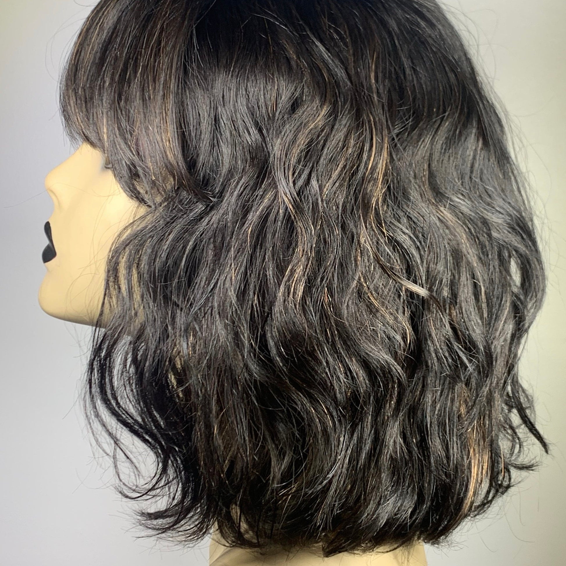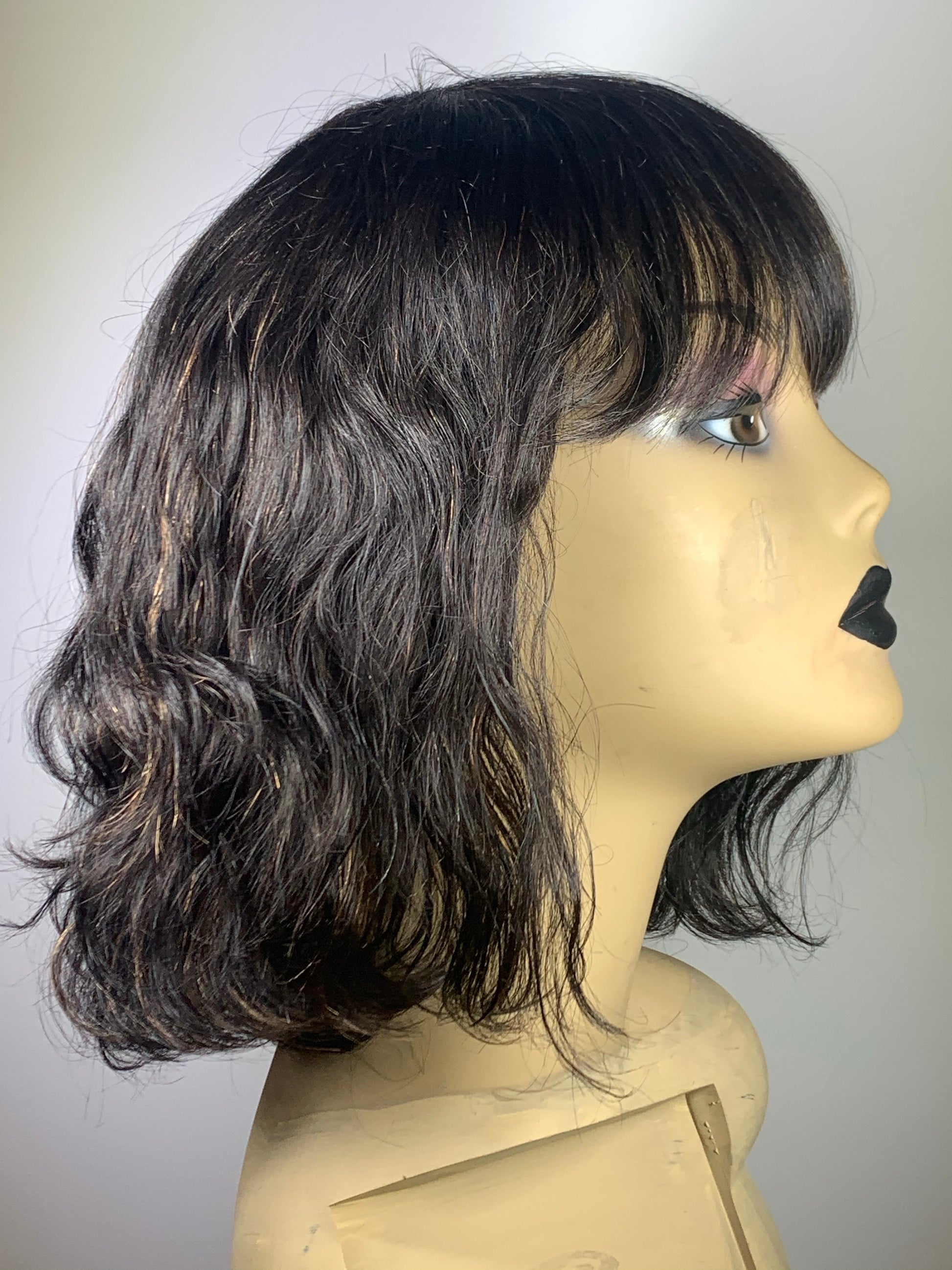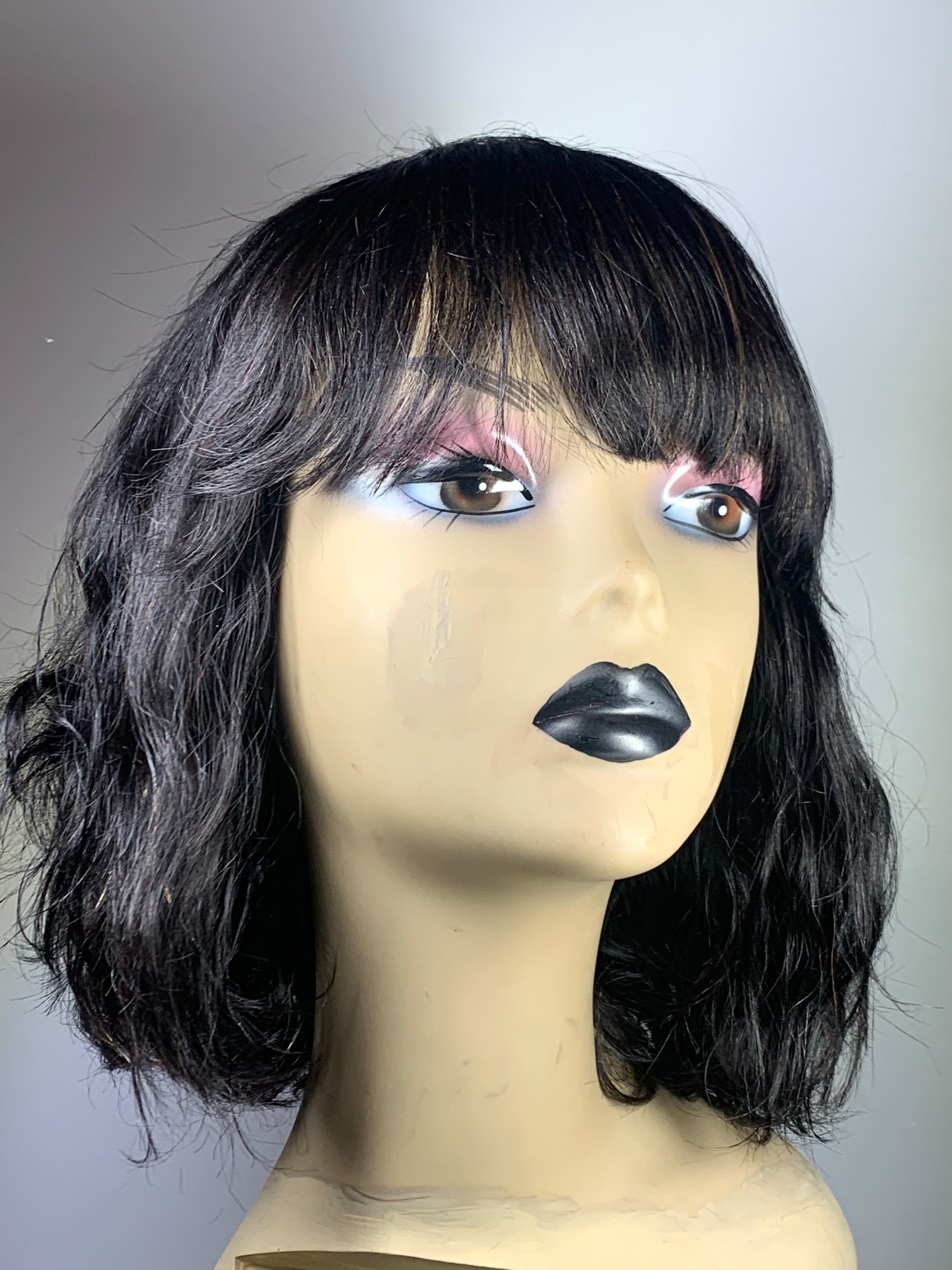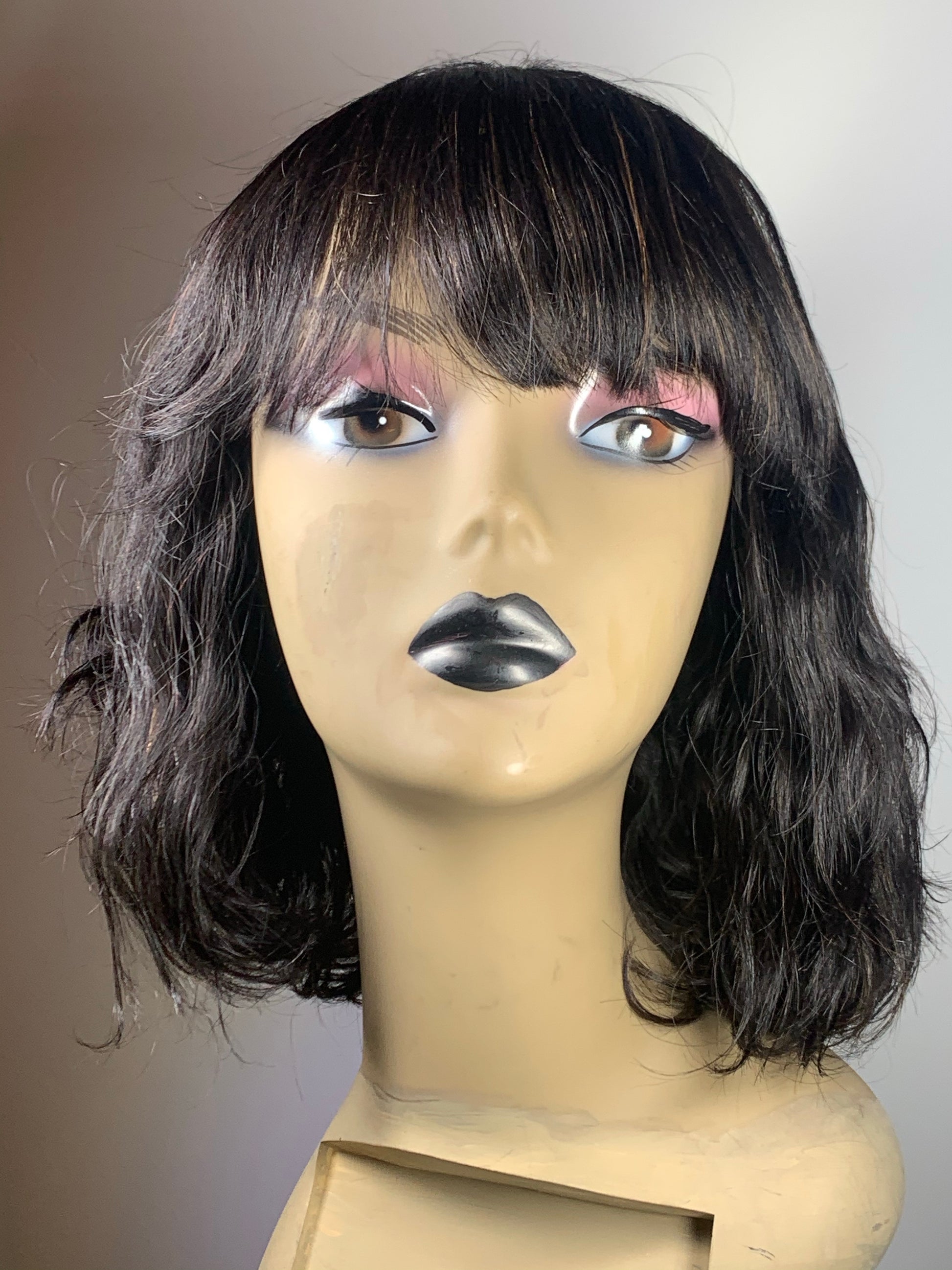 Super cute wavy bob with bangs. 100% Brazilian Human hair.
