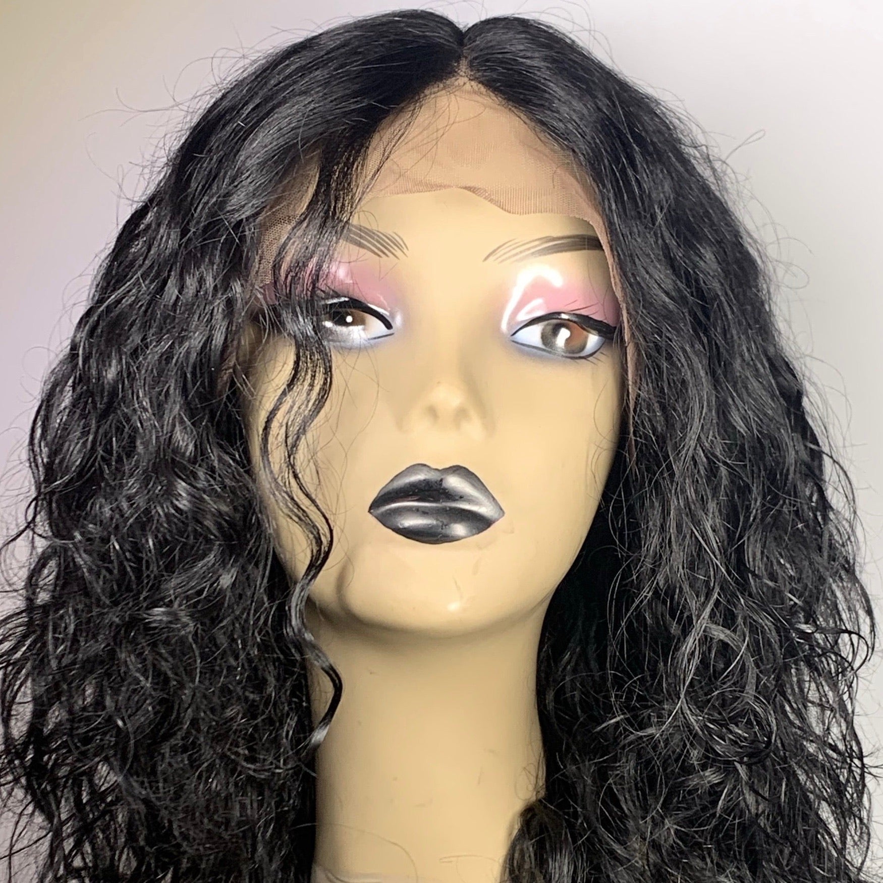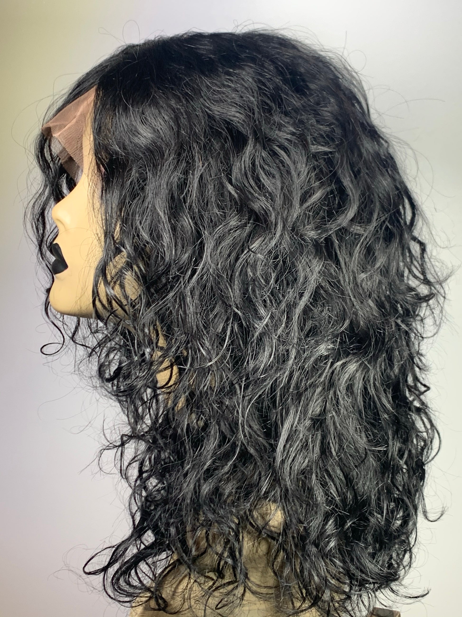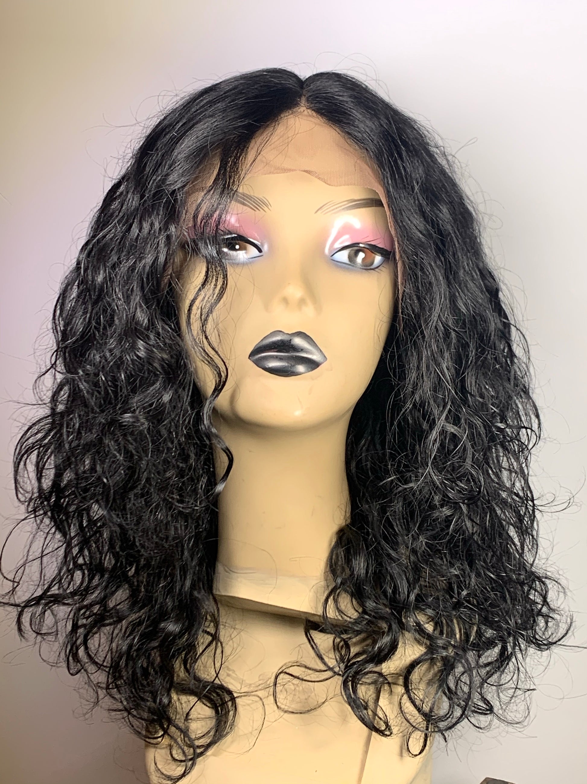 Soft, pretty medium length, wavy lace unit. Middle, left or right side part options. 100% Human hair.