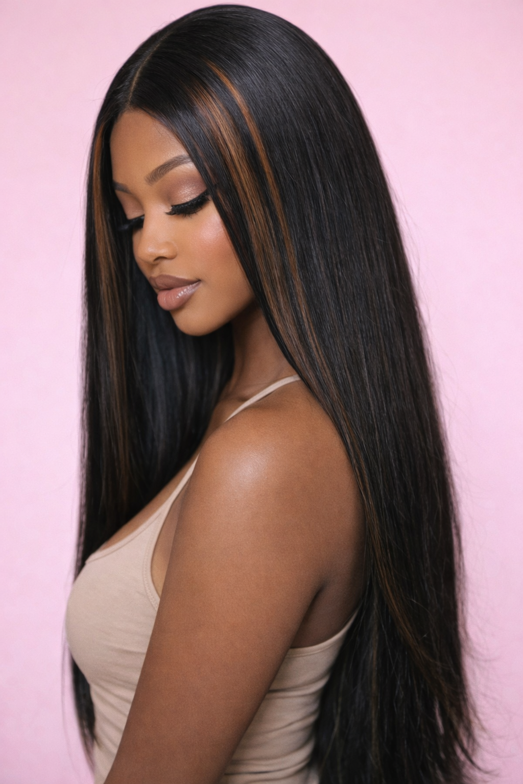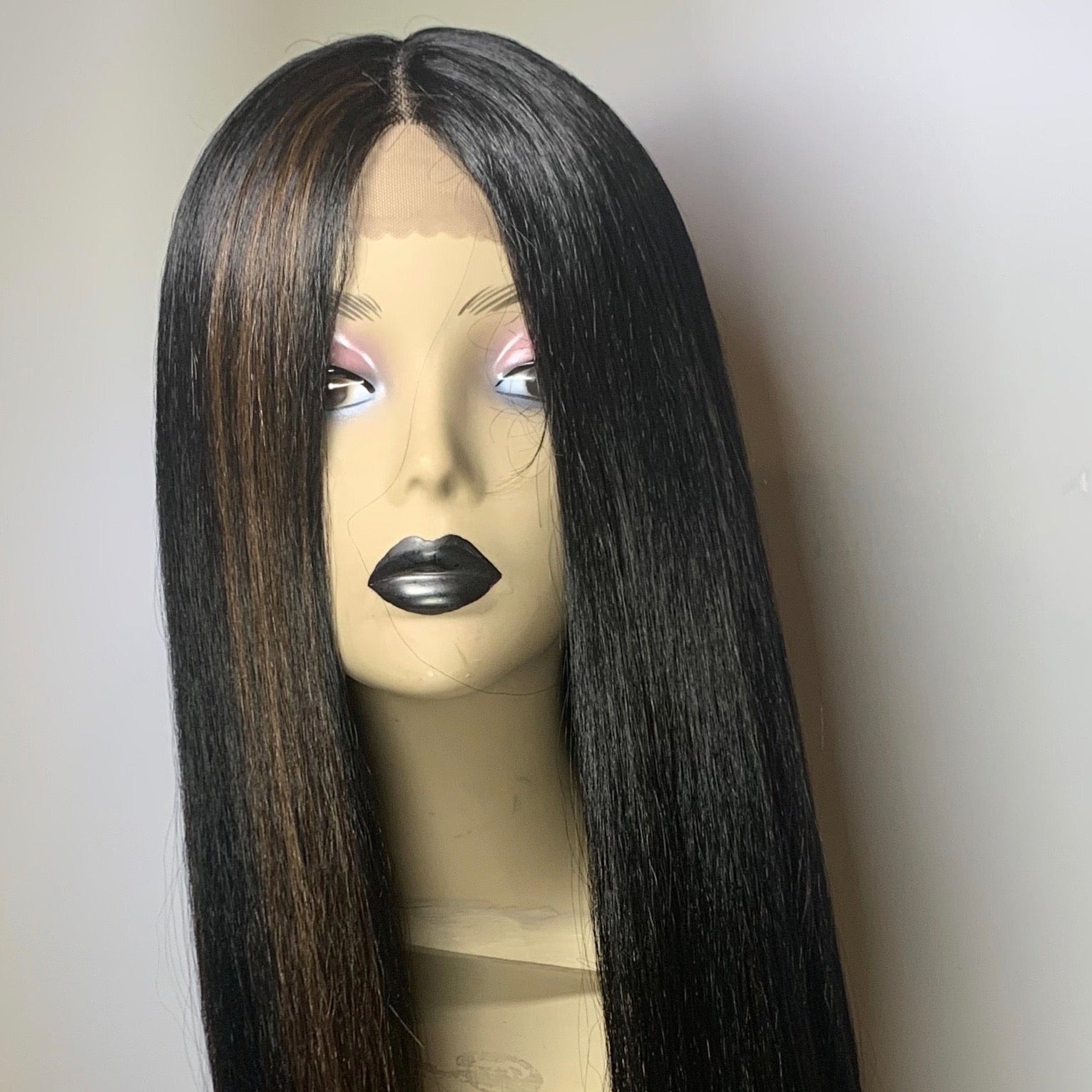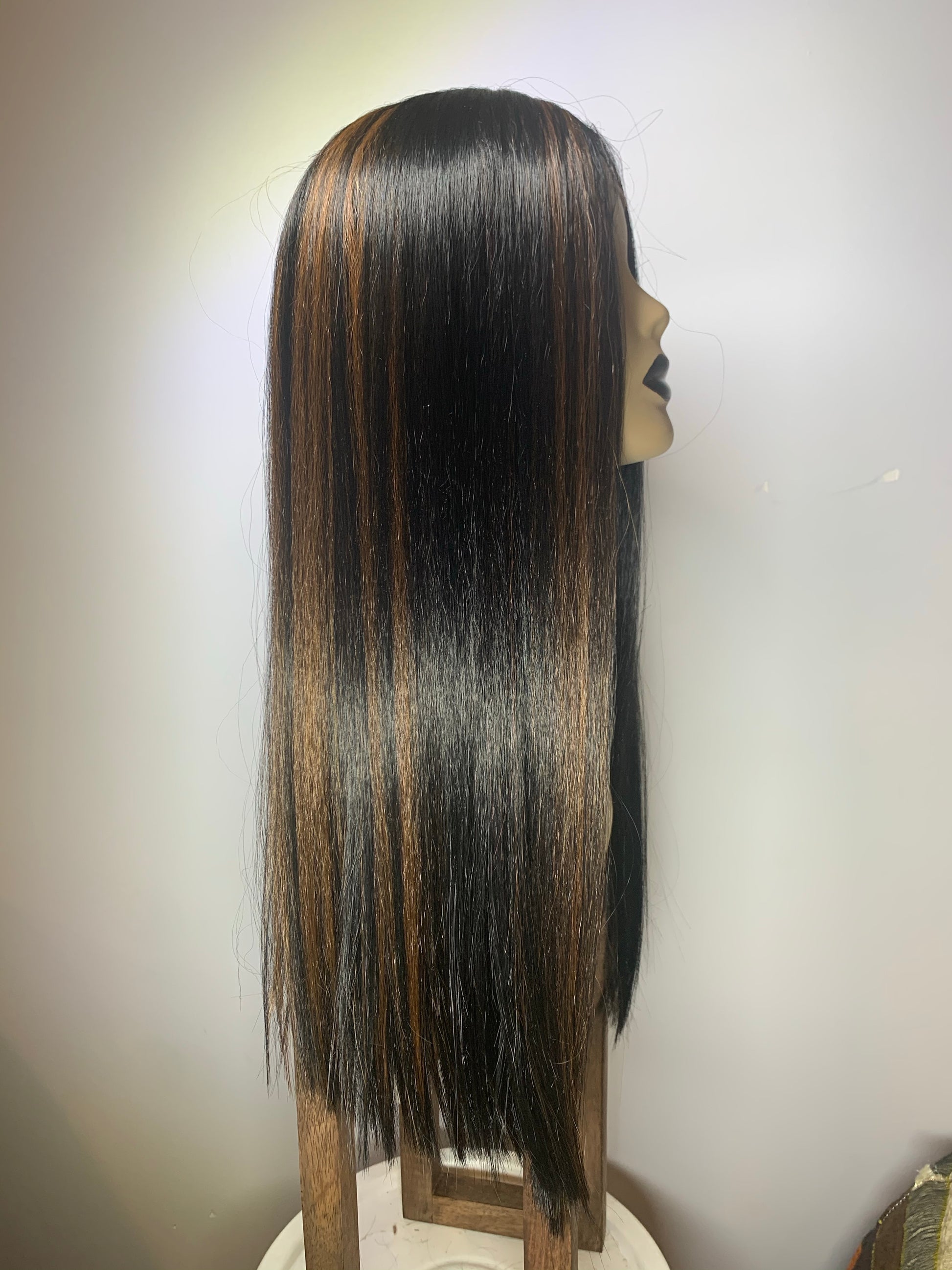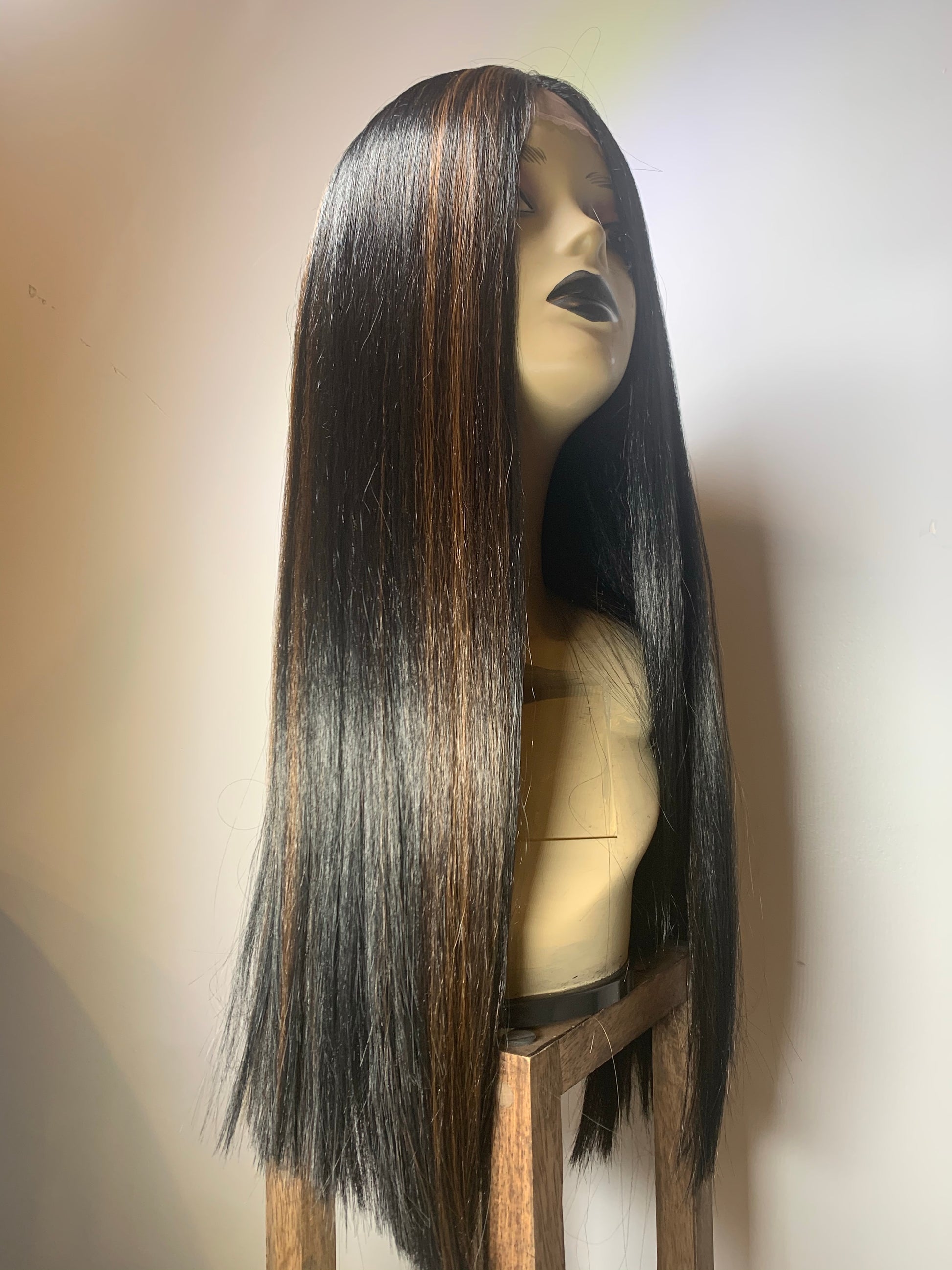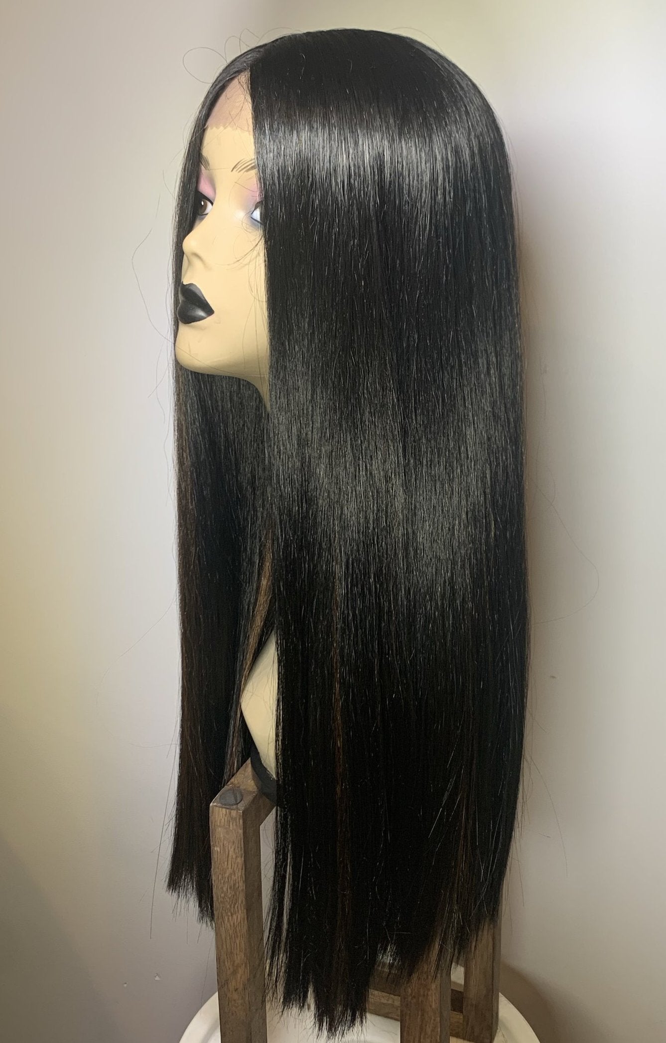 Long bone straight smooth yet yaki blunt cut. Middle part, lacefront unit.