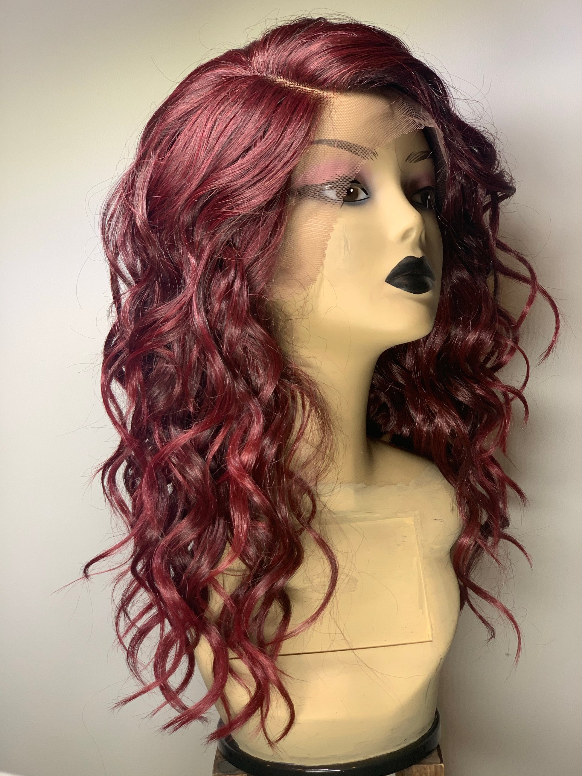 Super Full and Vibrant Curly Lacefront Unit. Deep Curved Side Part.
